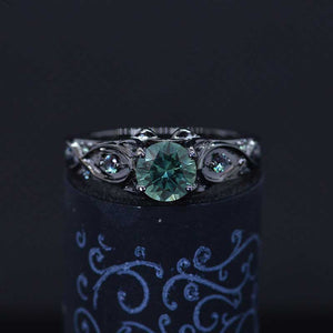 14K Black Gold Teal Sapphire Celtic Engagement Ring - Giliarto