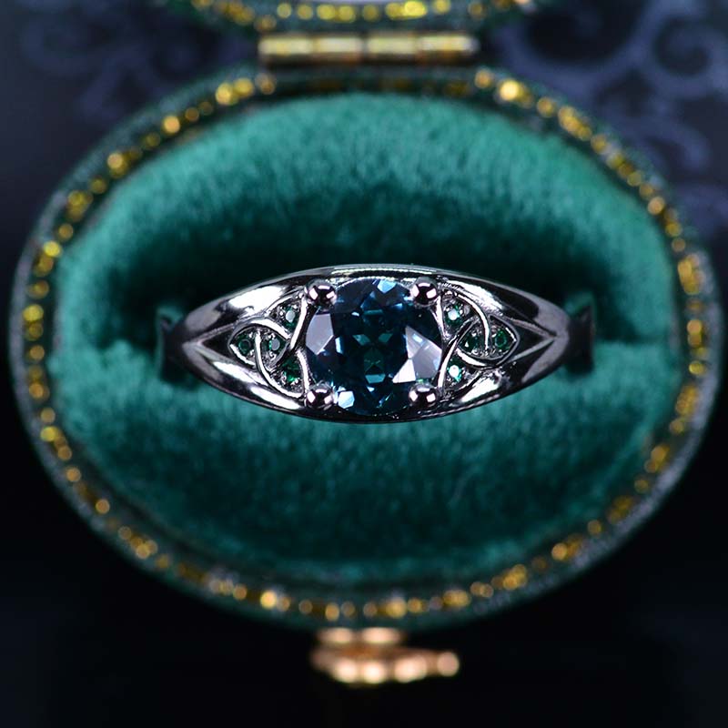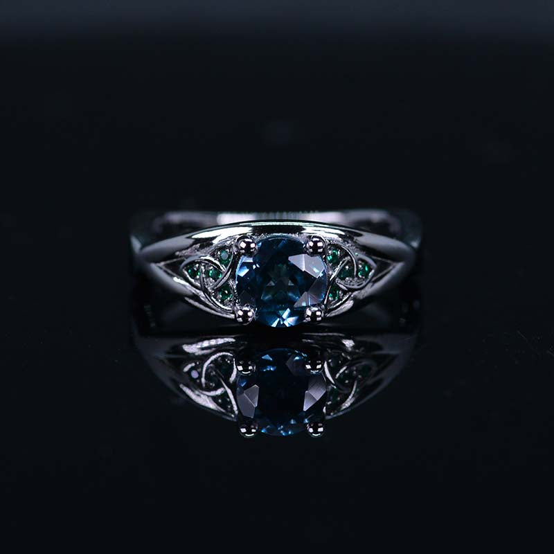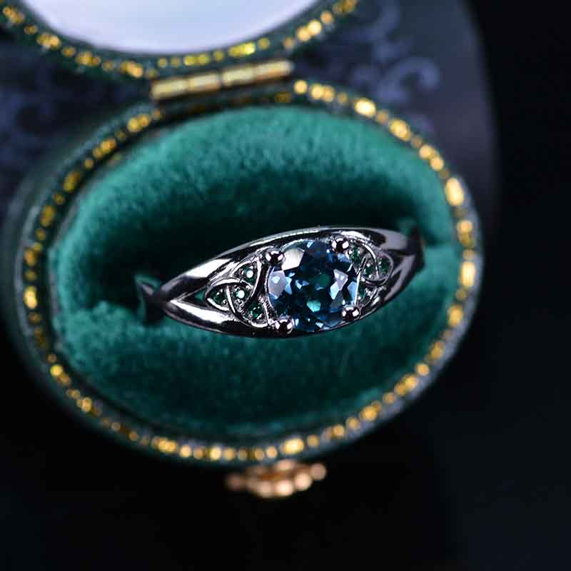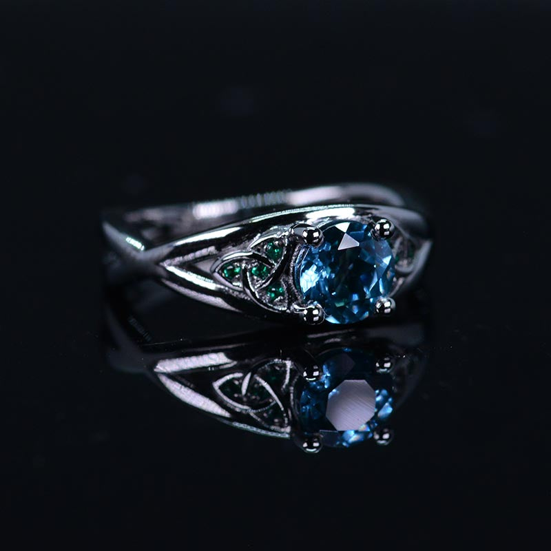 14K Black Gold Teal Sapphire Celtic Engagement Ring Giliarto