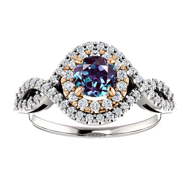 14K Gold 1.0 Carat Forever One Ethically Lab-Grown Alexandrite 1/3 CTW Diamond Engagement Ring