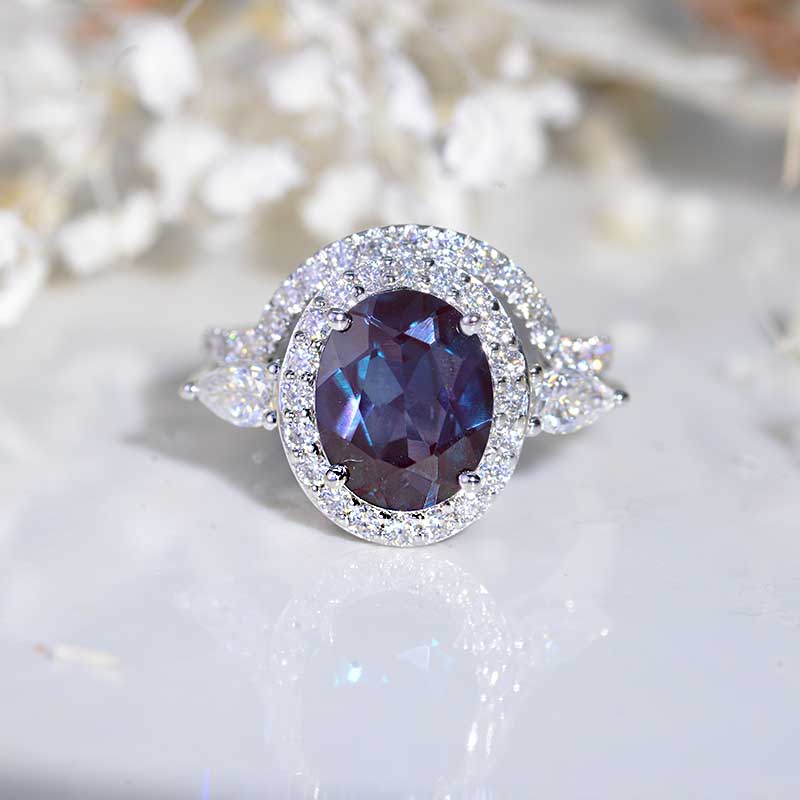 14K Gold 4 Carat Oval Alexandrite Halo Engagement Ring Eternity Ring Set Model 1276-10x8
