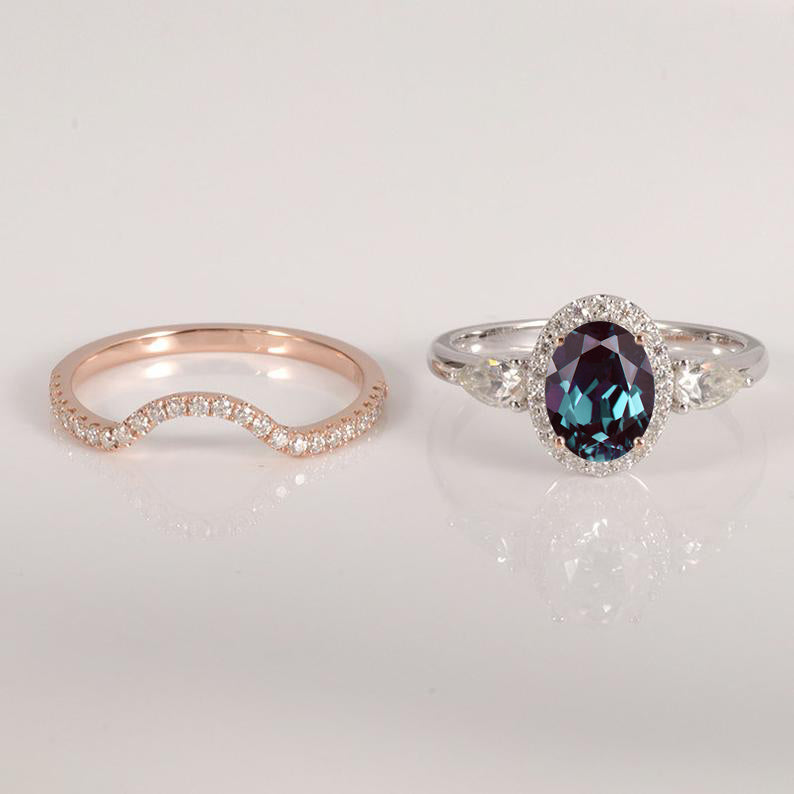 14K Gold 3 Carat Oval Alexandrite Halo Engagement Ring Eternity Ring Set