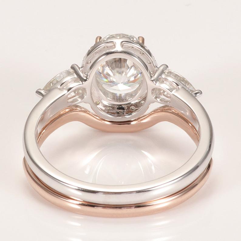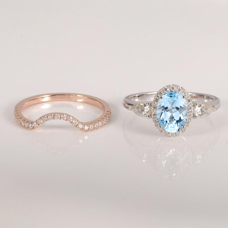 14K Gold 3 Carat Oval Aquamarine Halo Engagement Ring Eternity Ring Set