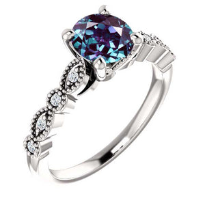14K Gold  6.5 mm Round  Ethically Lab-Grown Alexandrite .07 CTW Diamond Engagement Ring