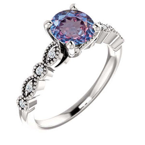 14K Gold  6.5 mm Round Portuguese Cut Ethically Lab-Grown Alexandrite .07 CTW Diamond Engagement Ring