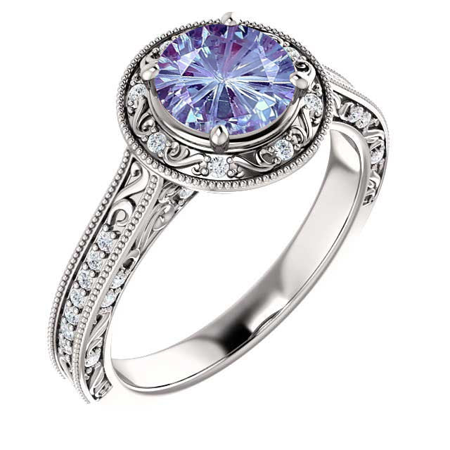 14K Gold 6.5mm Round Fireworks Cut Alexandrite 1/4 CTW Alexandrite Engagement Ring