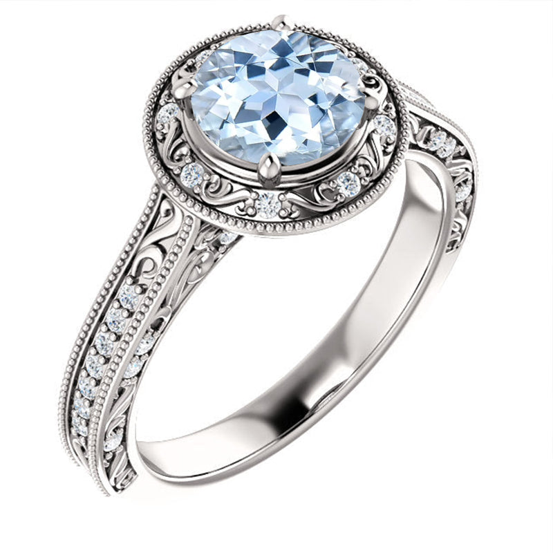 14K Gold 6.5 mm Round Cut Forever One Genuine Natural Aquamarine 1/4 CTW Genuine Natural Aquamarine Engagement Ring