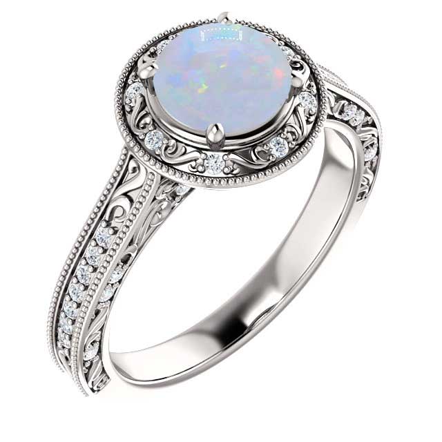 14K Gold 6.5mm Round White Opal 1/4 CTW White Opal Engagement Ring