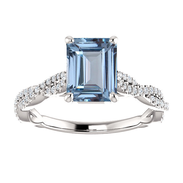 14K Gold 8x6 mm Emerald Cut Genuine Natural Aquamarine 1/3 CTW Genuine Natural Aquamarine Engagement Ring