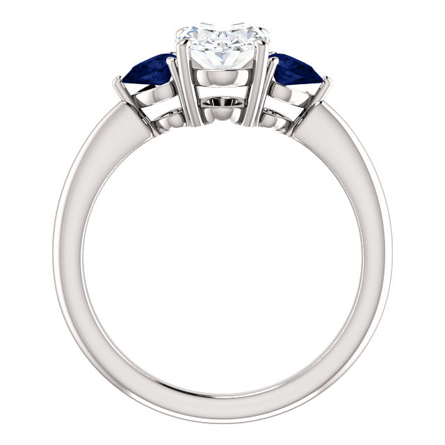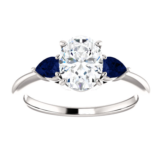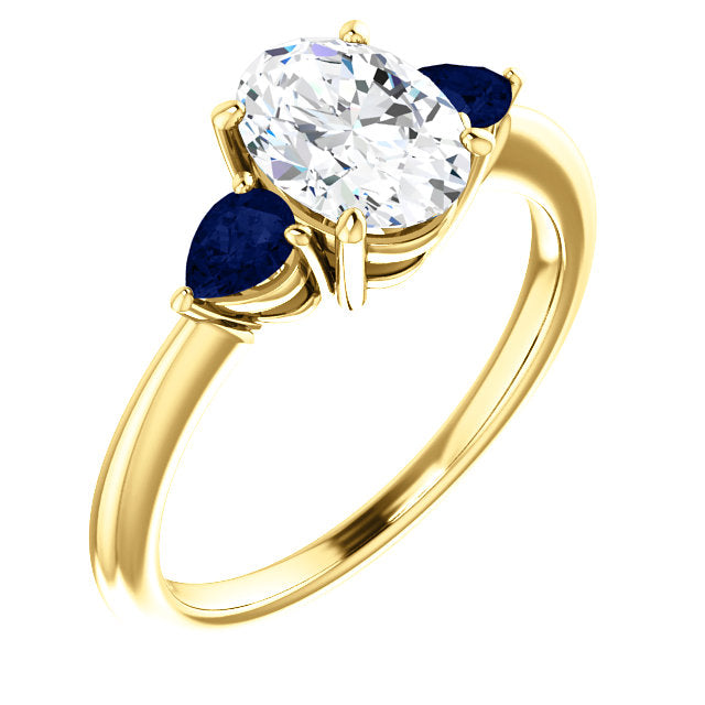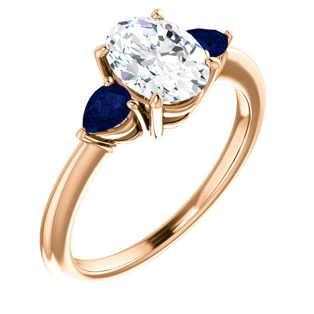 14K Gold 1 Carat Oval Giliarto Moissanite with 0.4 Carat Sapphires Engagement Ring