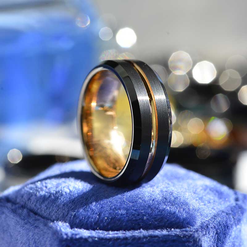 Black and Yellow Gold Color Tungsten Wedding Band - Giliarto