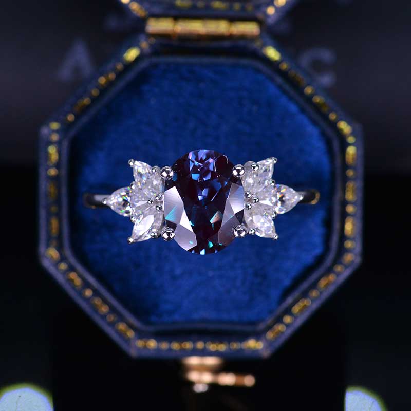 Engagement : 2 Carat Ethical Lab-Grown Alexandrite Oval 9x7mm