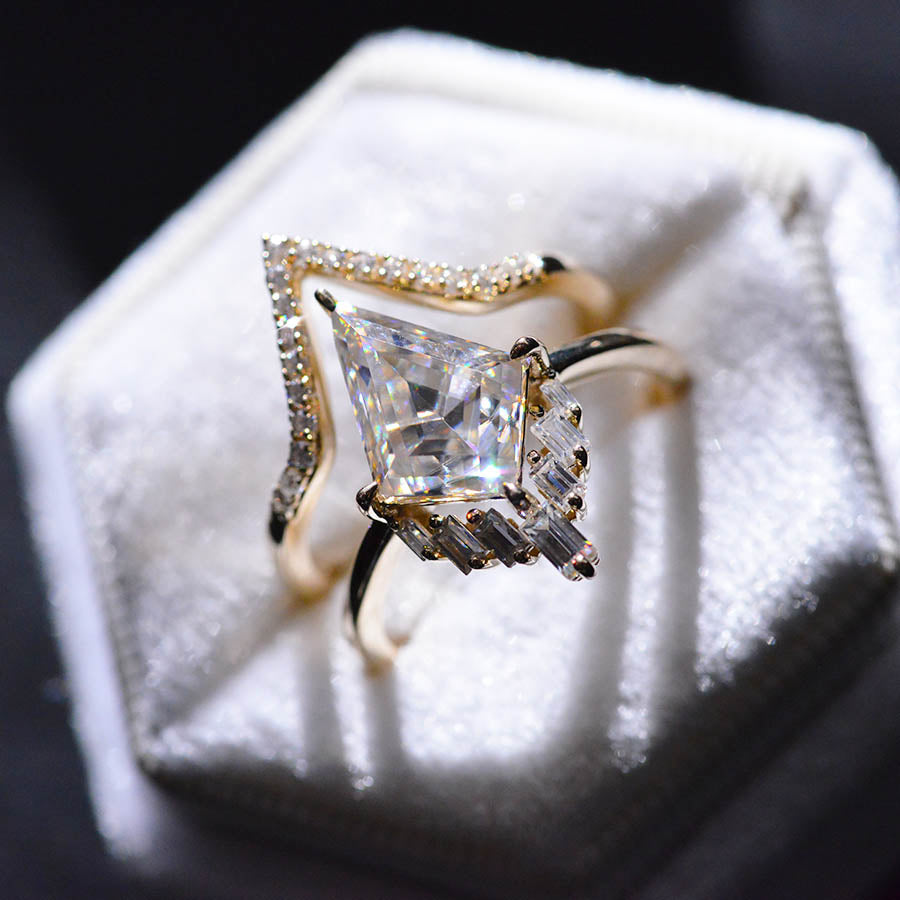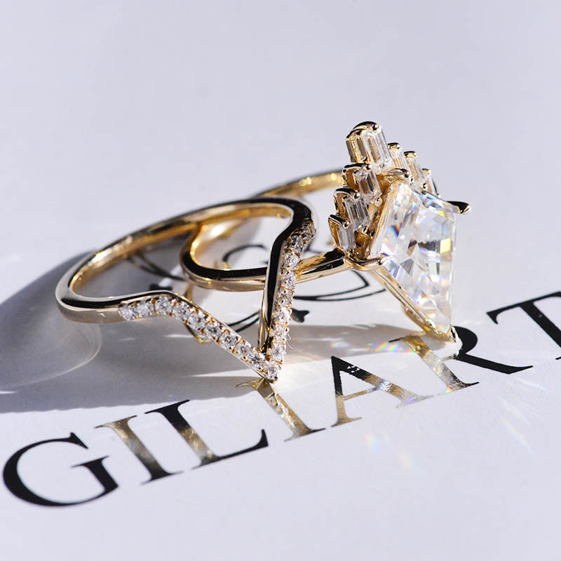 Engagement : Top Quality 4 Carat Giliarto Moissanite Kite 14x10 mm D-Colorless, VVS1-Clarity, VG-Cut, Ex-Polish, VG-Symmetry Center Stone with 38 Colorless 0.5 CTW Moissanite