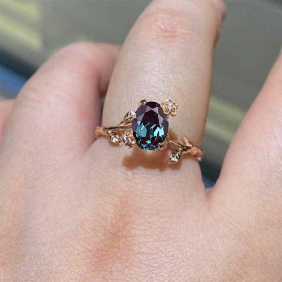 14K Rose Gold Dainty Alexandrite Leaf Ring, 2ct Oval Twig Ring, Rose G - Giliarto