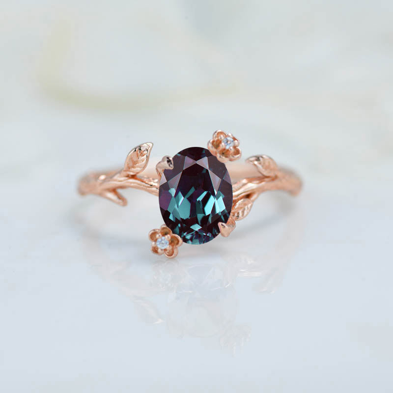 The default design option features 9x7mm Oval Cut Peach Ethically LAB-Grown Alexandrite
