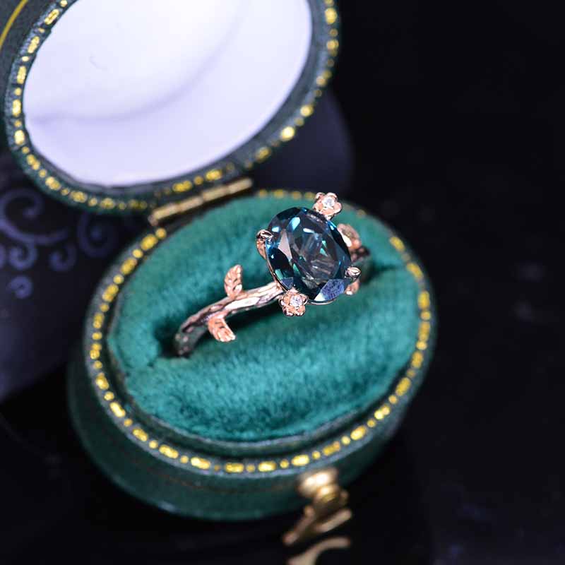 14K Rose Gold Dainty 2 Carat Oval Teal Sapphire Floral Ring