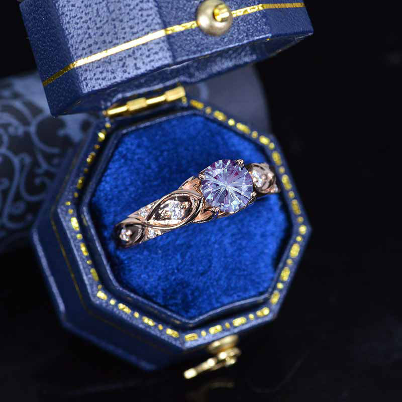Fireworks Cut Ethically Lab-Grown Alexandrite Center Stone - Round 6 mm, Ex-Cut, Ex-Polish, VG-Symmetry) and 8 - Ruby Accents 0.1 CTW with 14K Rose Gold.