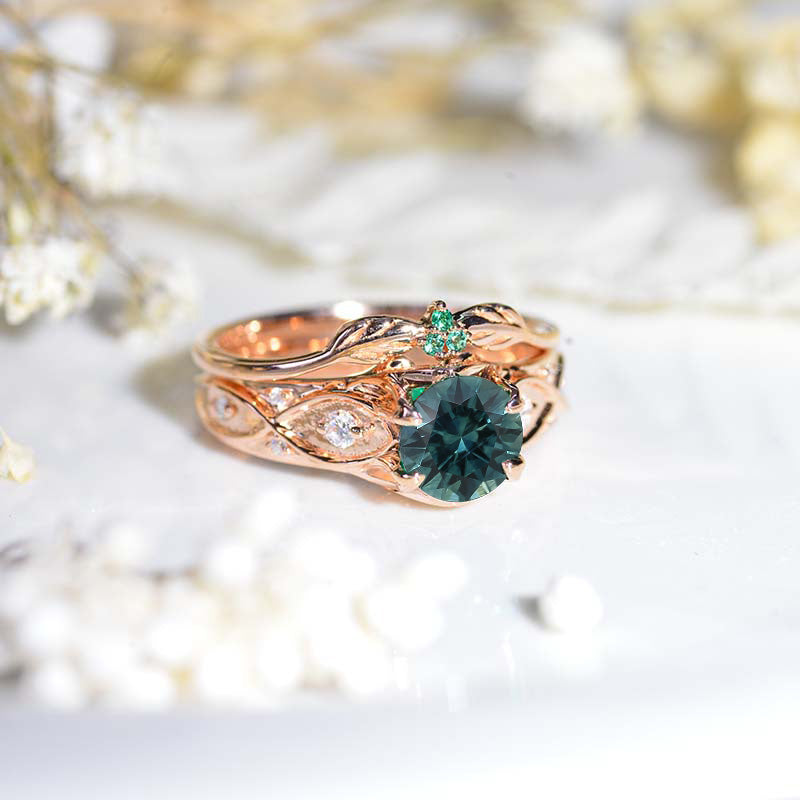 14K Rose Gold Teal Sapphire Celtic Engagement Ring Set