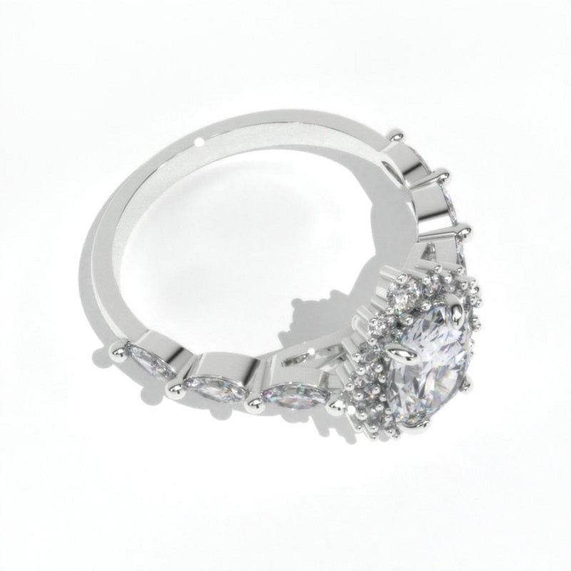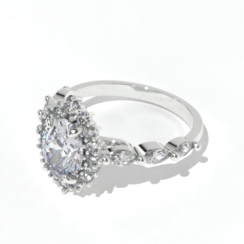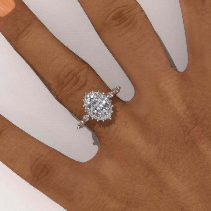 The default design option features 8x6mm Oval Center Stone LAB-Grown Diamond StoneD-Colorless, VVS1-Clarity, VG-Cut, Ex-Polish, VG-Symmetry set with D- Colorless LAB-Grown Diamond Accent Stones