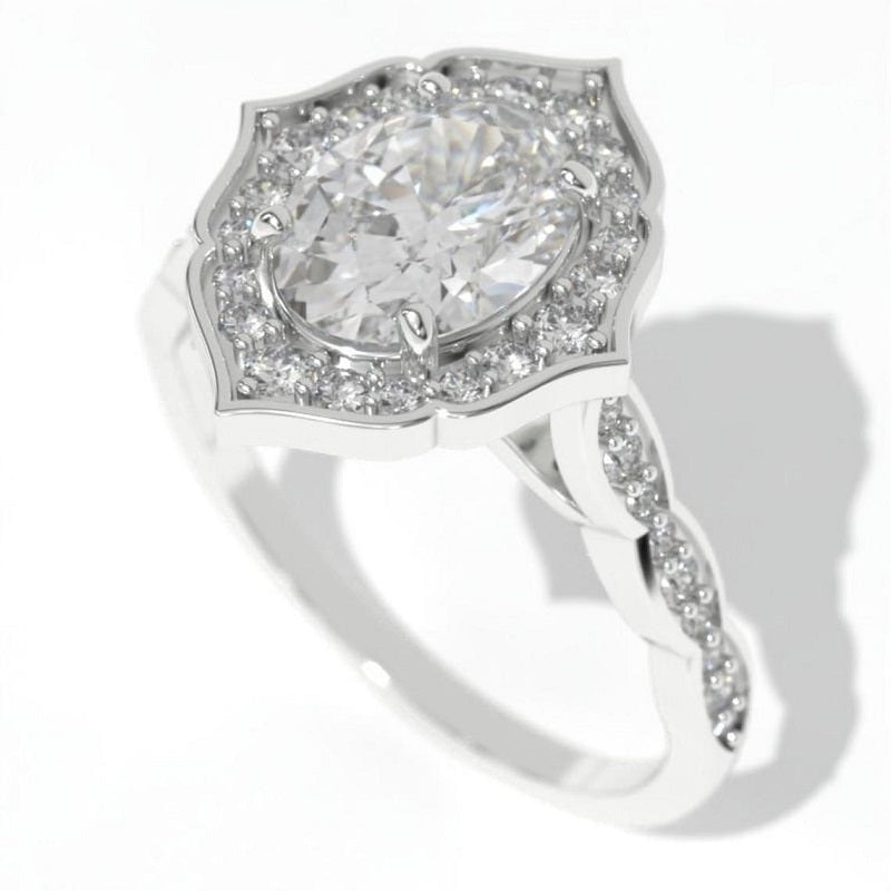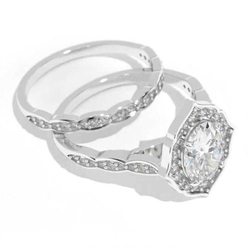 14K Solid Gold Ring 1.5CT Oval LAB-Grown Diamond Wedding Ring LAB-Grown Diamond Halo Engagement Ring Anniversary Promise Eternity Gold Ring Set Model 135