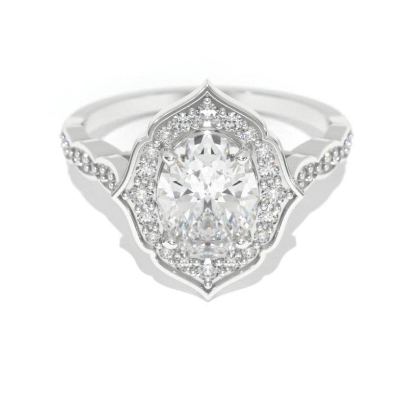 The default design option features 8x6mm Oval LAB-Grown DiamondCenter Stone D-Colorless, VVS1-Clarity, VG-Cut, Ex-Polish, VG-Symmetry