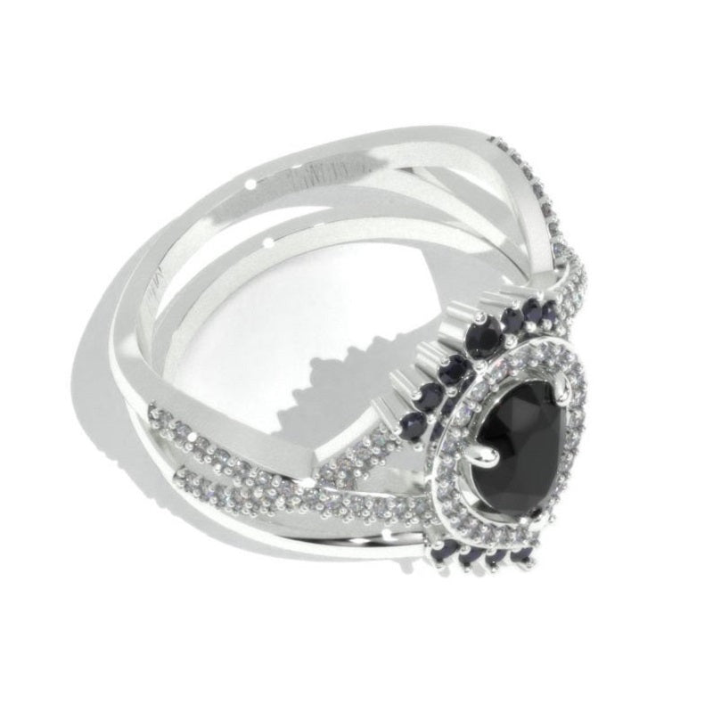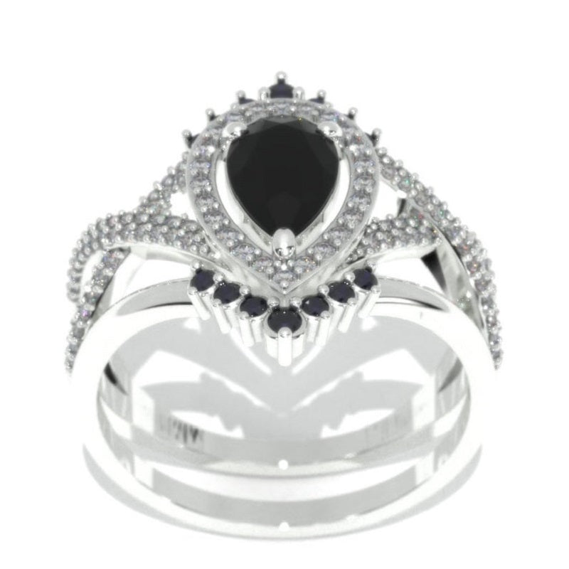 The default design option features 8x6mm Pear Center Black Moissanite Center Stone Ring Set, VVS1 - Clarity, VG-Cut, Ex-Polish, VG-Symmetry