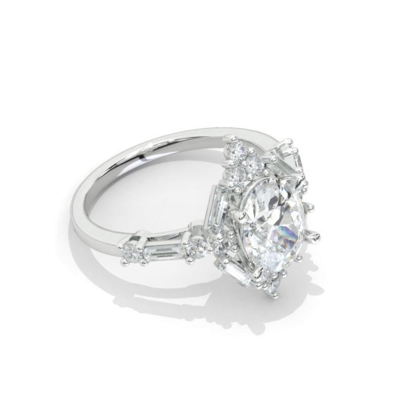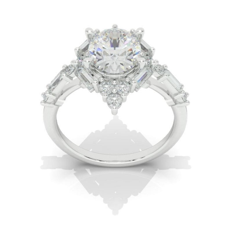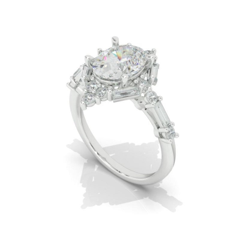 The default design option features 9x7mm Oval LAB-Grown Diamond Stone,Ā D-Colorless, VVS1-Clarity, VG-Cut, Ex-Polish, VG-Symmetry, Set with Colorless LAB-Grown DiamondĀ Accent stonesĀ in 14K Rose Gold Engagement Ring.Ā