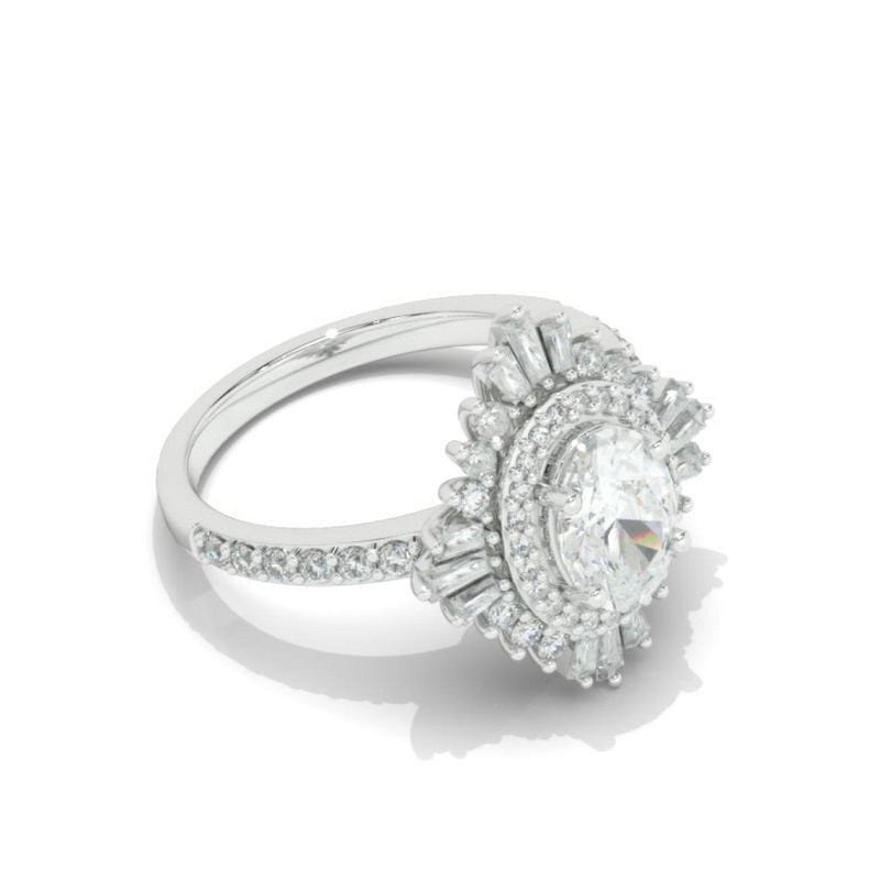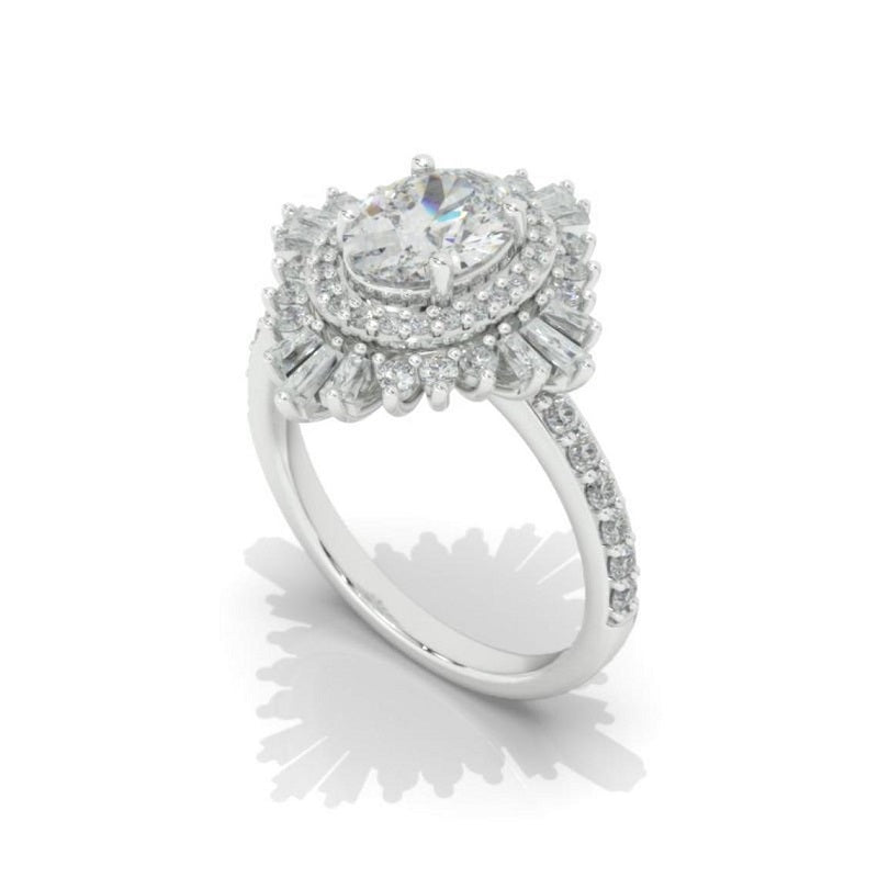 14K Solid Gold Ring 2CT Oval Halo Moissanite Vintage Wedding Ring. Engagement Ring Anniversary Ring, Baguette Double Halo Ring