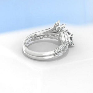 14K Solid Gold Ring 2CT Round Alexandrite Halo Engagement Ring Anniversary Promise Eternity Gold Ring Set