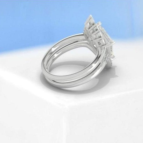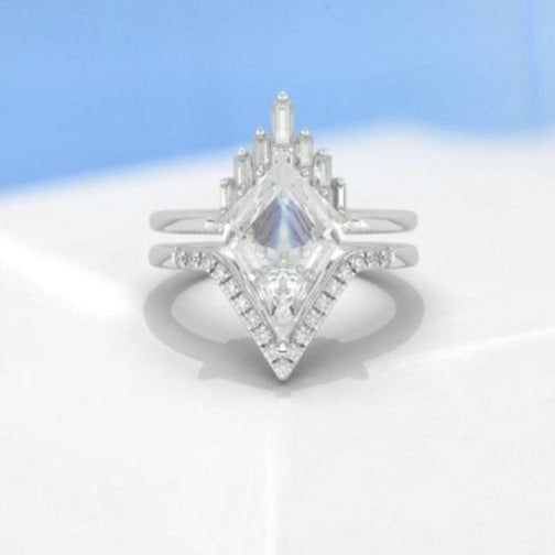 The default design option features 12x8mm Kite Center Moissanite Stones,Â