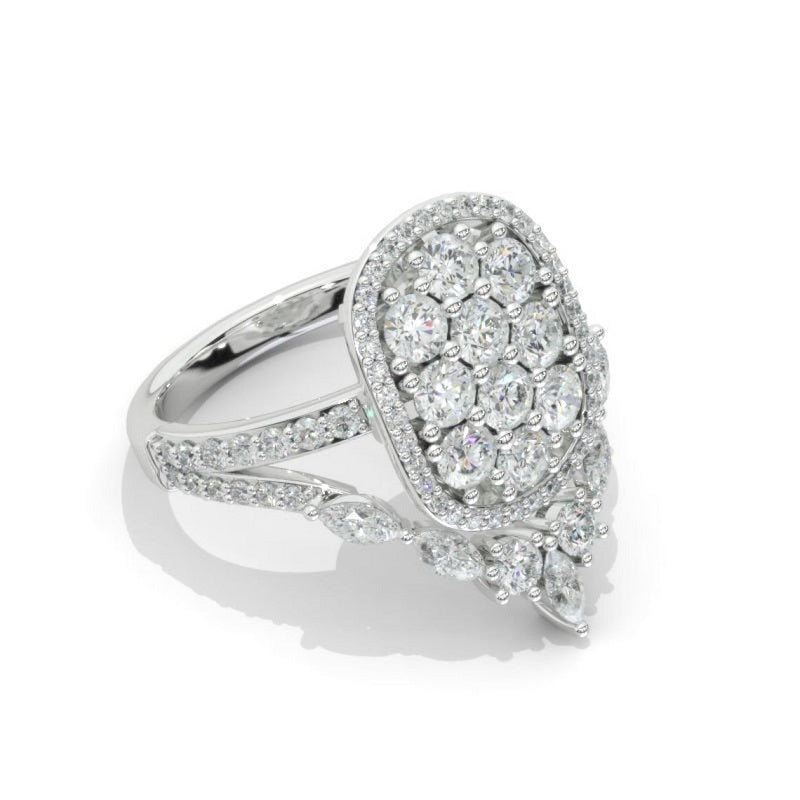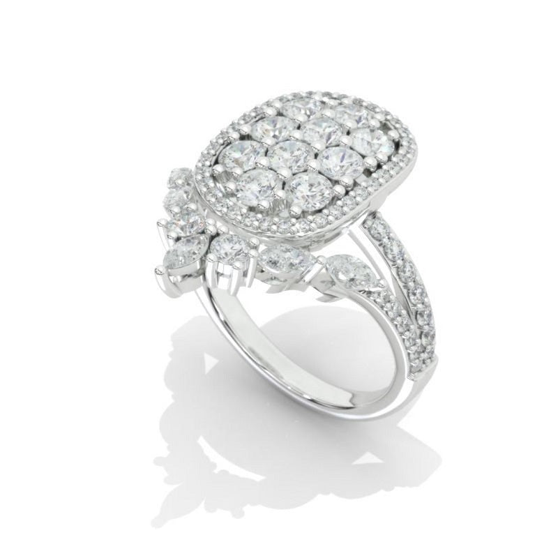 The default design option features Approximately 3 CTW+ Cluster LAB-Grown Diamond Stones, D-Colorless VVS11-Clarity, VG-Cut, Ex-Polish, VG-Symmetry