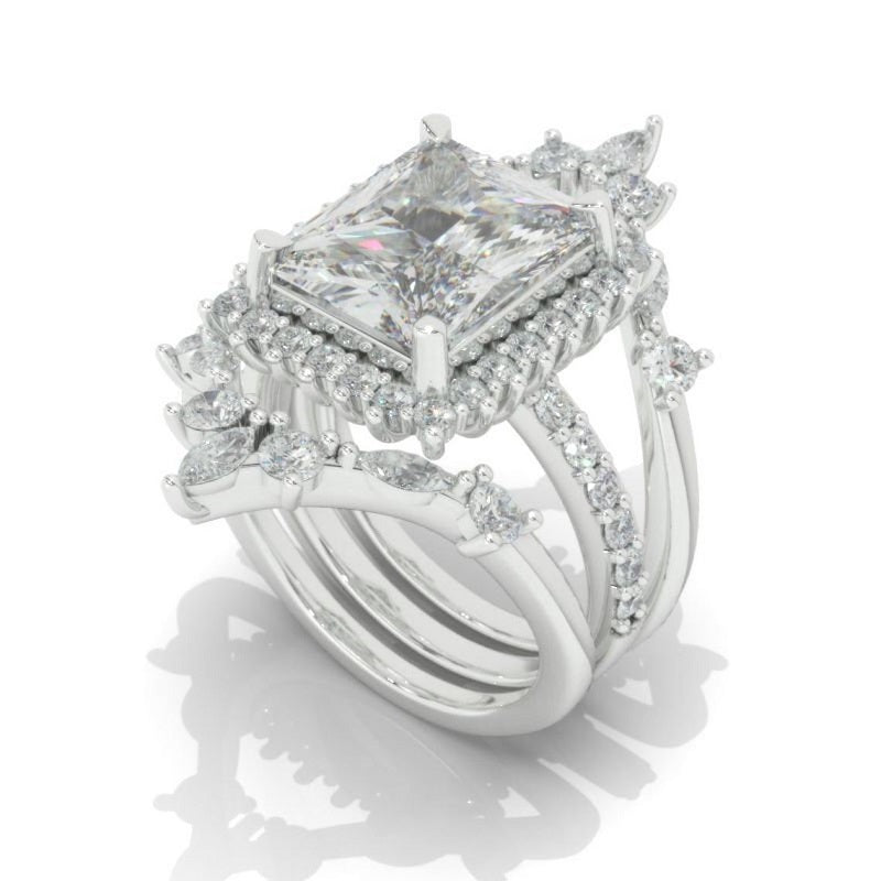 The default design option features Approximately 5+ Carat 11x9mm Radiant Center LAB-Grown Diamond StoneD-Colorless, VVS1-Clarity, VG-Cut, Ex-Polish, VG-Symmetry set with D- Colorless LAB-Grown Diamond Accent Stones