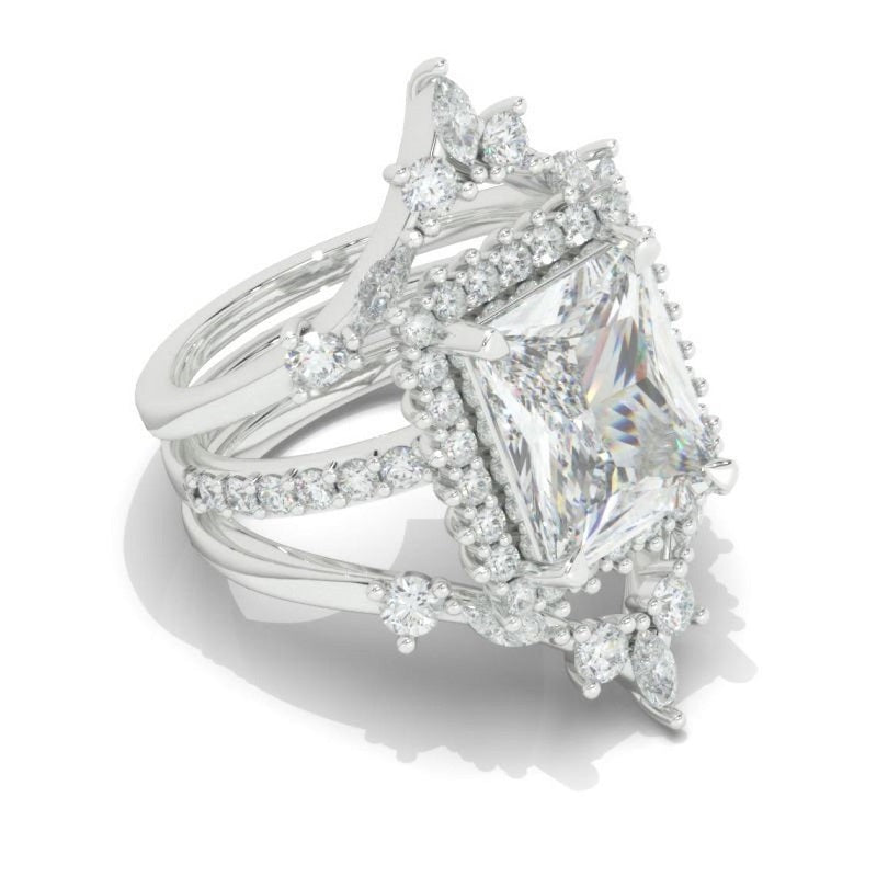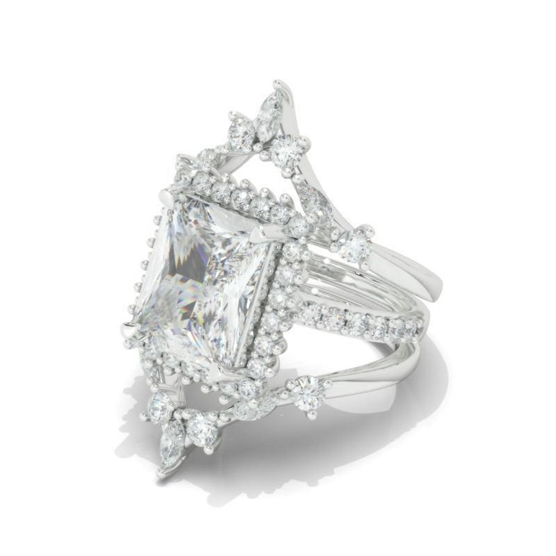 The default design option features 11x9mm Radiant Center LAB-Grown Diamond Stone, D-Colorless VVS1-Clarity, VG-Cut, Ex-Polish, VG-Symmetry