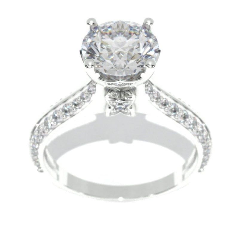 The default design option features 7mm Round Center LAB-Grown Diamond stone,Ā D-Colorless VVS1-Clarity, VG-Cut, Ex-Polish, VG-Symmetry set with D- Colorless LAB-Grown DiamondĀ Accent StonesĀ