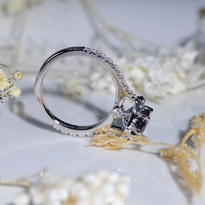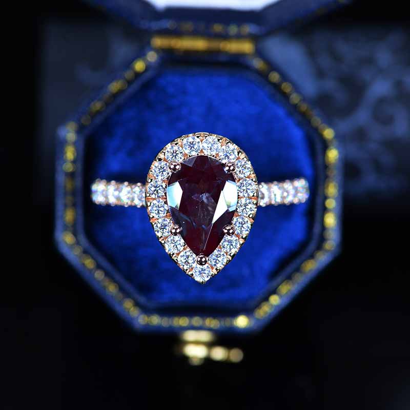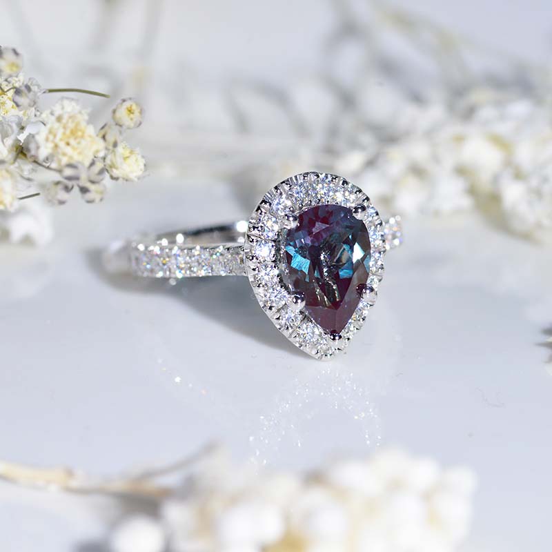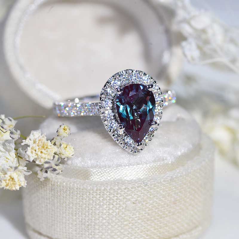 14K Solid Gold 3 Carat Alexandrite Pear Cut Halo Moissanite Ring - Giliarto