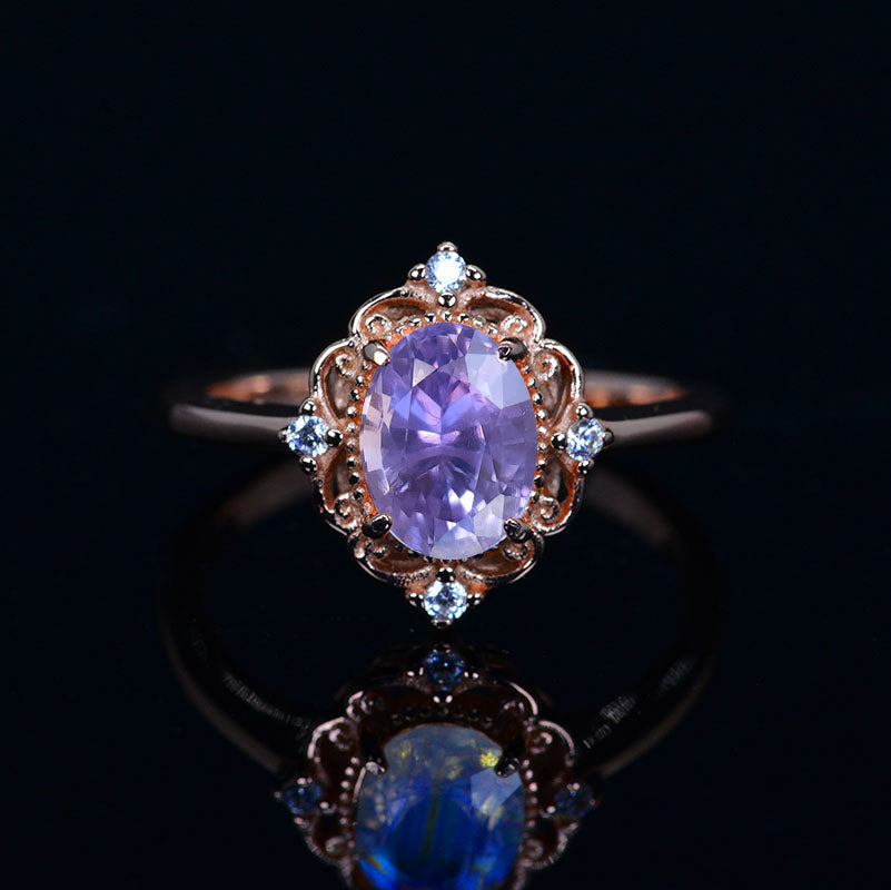 14K Solid Rose Gold Dainty Lavender Purple Sapphire Ring, 2ct Oval Cut - Giliarto