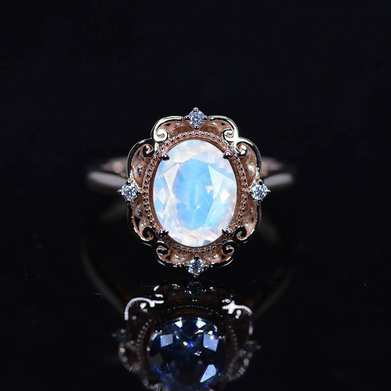 The default design option features 9x7mm Oval cut Genuine Moonstone Stone,Ā