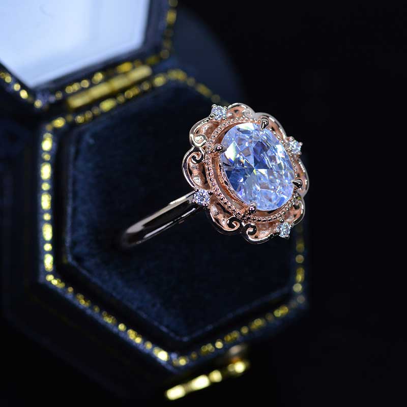 The default design option features 9x7mm Oval cut MoissaniteĀ Stone,Ā