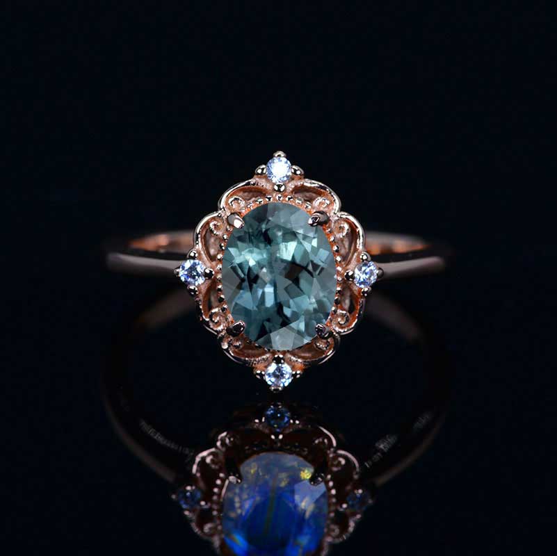 14K Solid Rose Gold Dainty Teal Sapphire Ring, 2ct Oval Cut Teal Sapph - Giliarto
