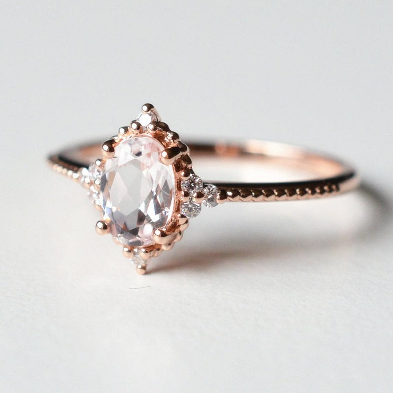 14K Solid Rose Gold Ring 2CT Oval Halo Morganite Wedding Ring Stone En - Giliarto