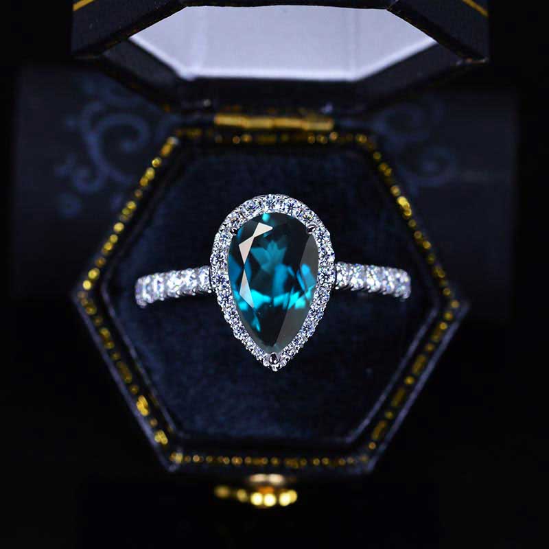 14K Solid White Gold 3 Carat Halo Pear Cut Cornflower Sapphire Ring
