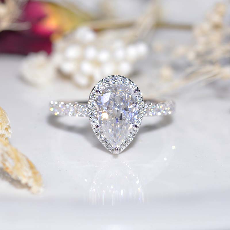 The default design option features 3 Carat 11x7mm Pear Cut Center Moissanite Center StoneÂ