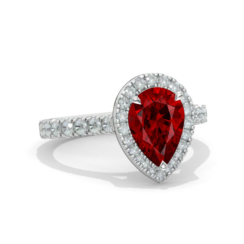 14K Solid White Gold 3 Carat Halo Pear Cut Ruby Ring - Giliarto