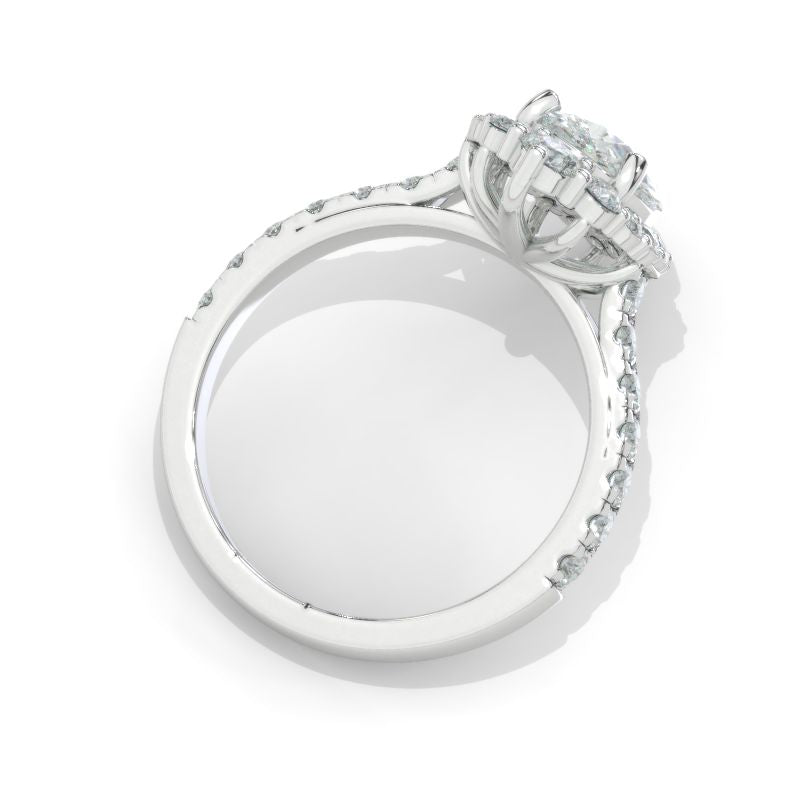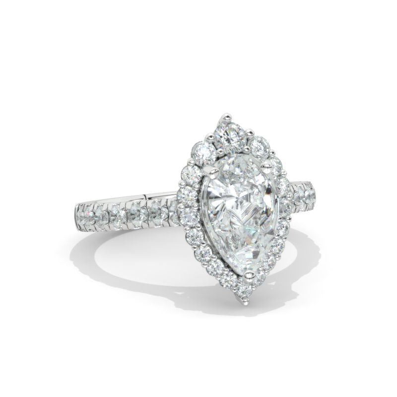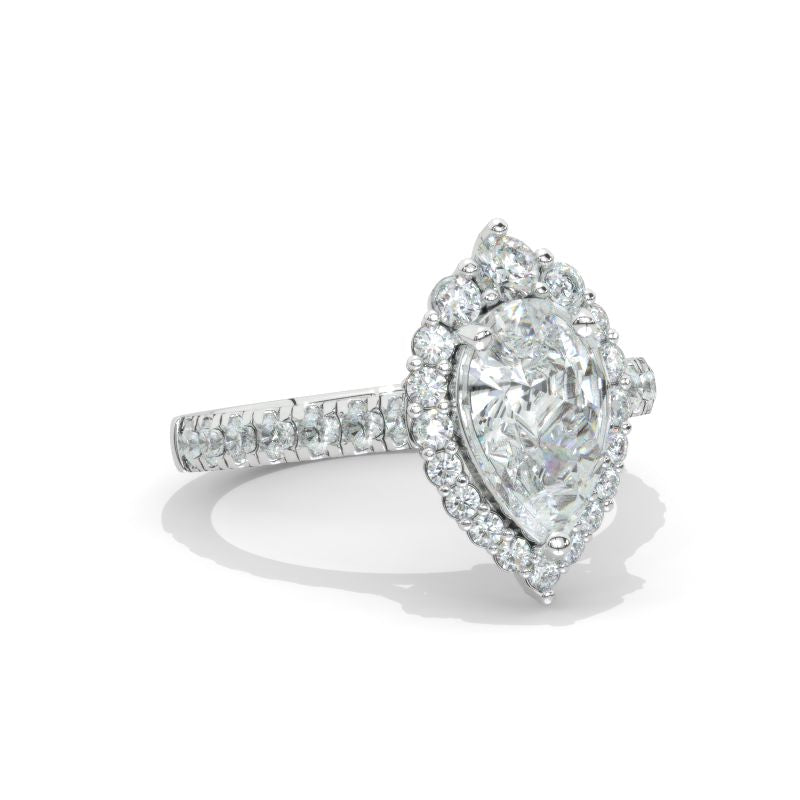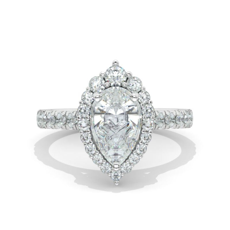 The default design option features 3 Carat 11x7mm Pear Center Moissanite Center StoneÂ