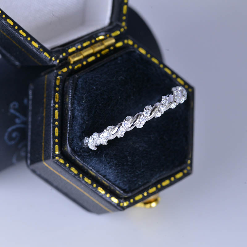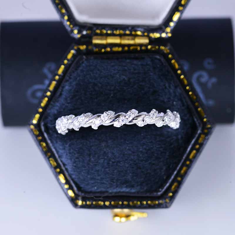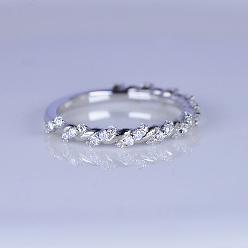 14K White 1/8 CTW Moissanite Pavé Twisted Anniversary Band - Giliarto