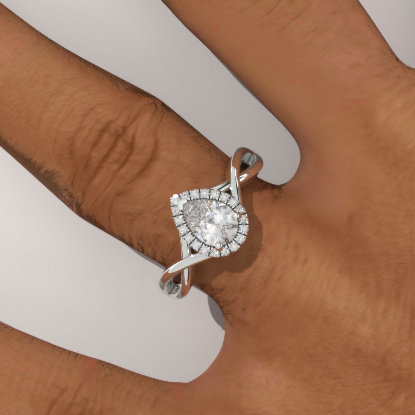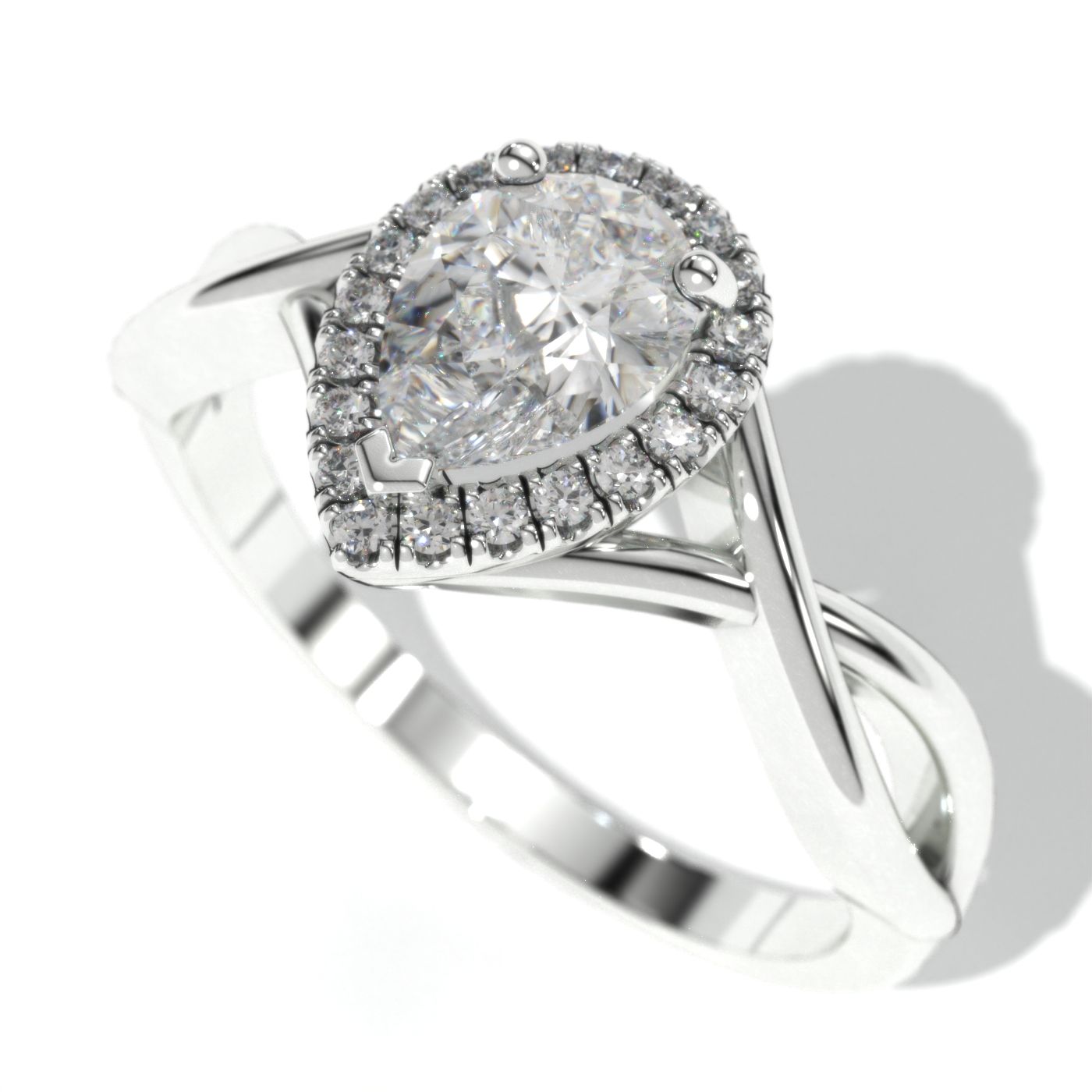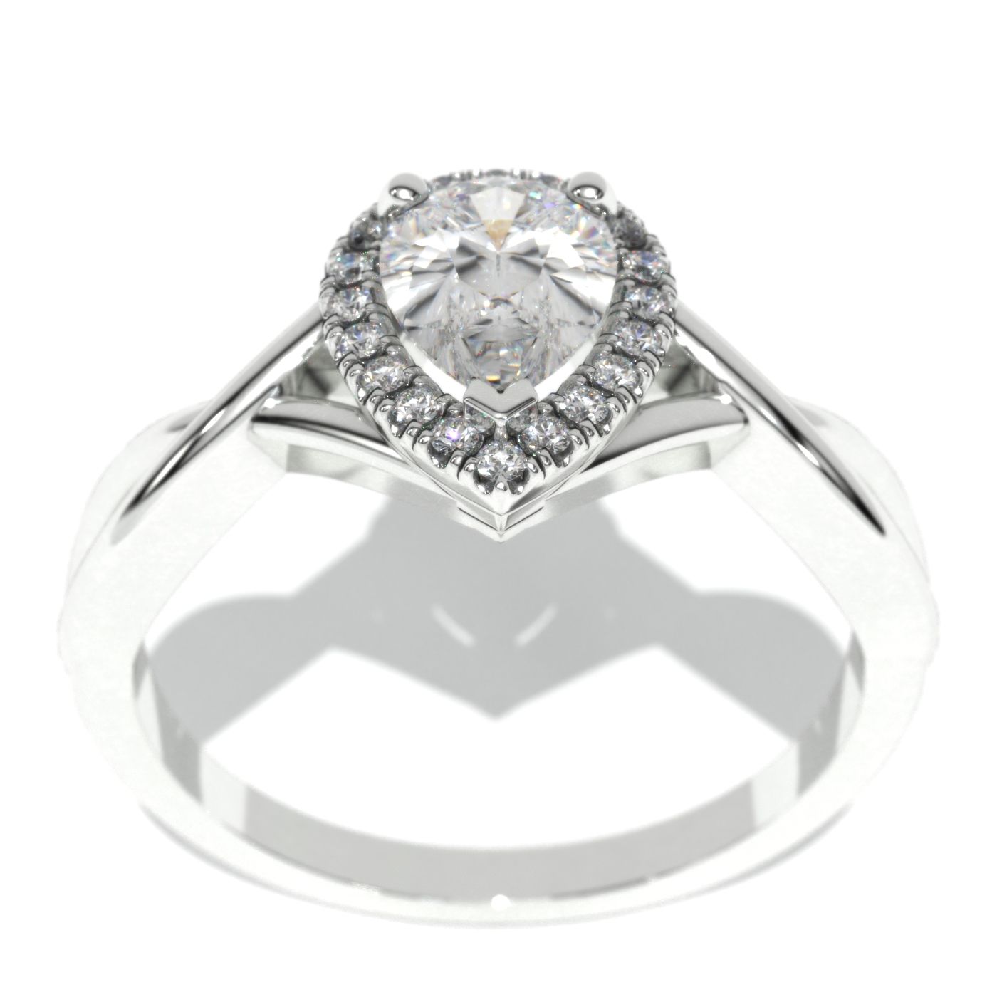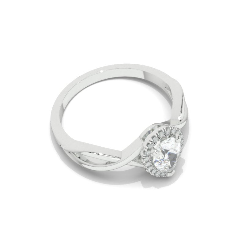 Engagement Ring: Approximately 0.7+ Carat LAB-Grown Diamond Pear 7x5mm D-Colorless VVS1-Clarity, VG-Cut, Ex-Polish, VG-Symmetry Center Stone with 20 Colorless 0.1 CTW LAB-Grown Diamond