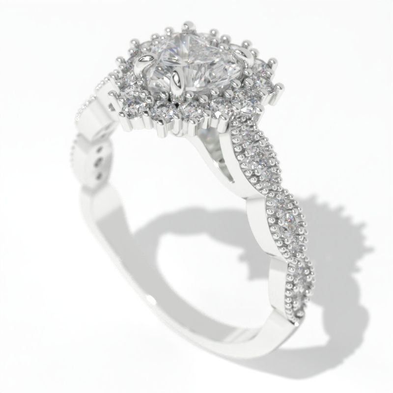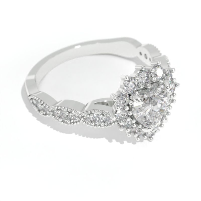 14K White Gold 1.5 Carat Heart LAB-Grown Diamond Halo Engagement Ring