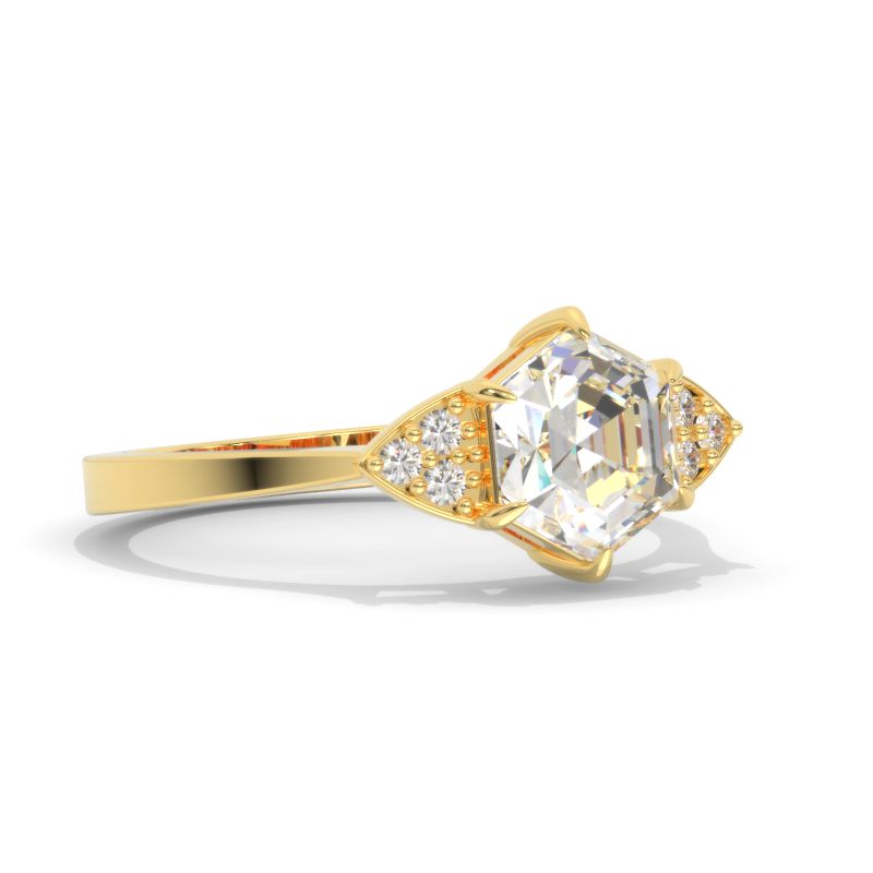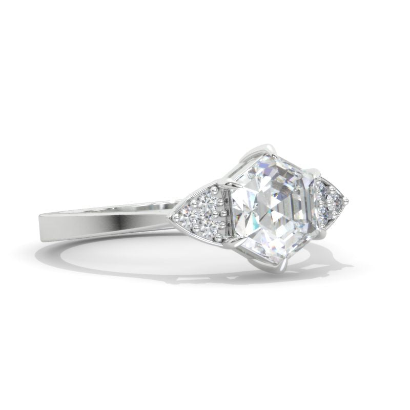 1.5 Carat Moissanite Hexagon Cut 6x7mm D-Colorless VVS1-Clarity, VG-Cut, Ex-Polish, VG-Symmetry Center Stone with Colorless 0.2 CTW Moissanite (D-Colorless VVS1 clarity) Accent Stones 14K White Gold Ring.