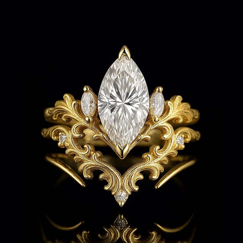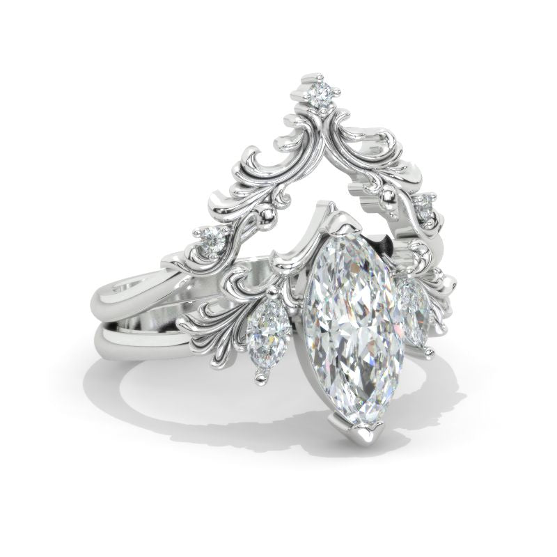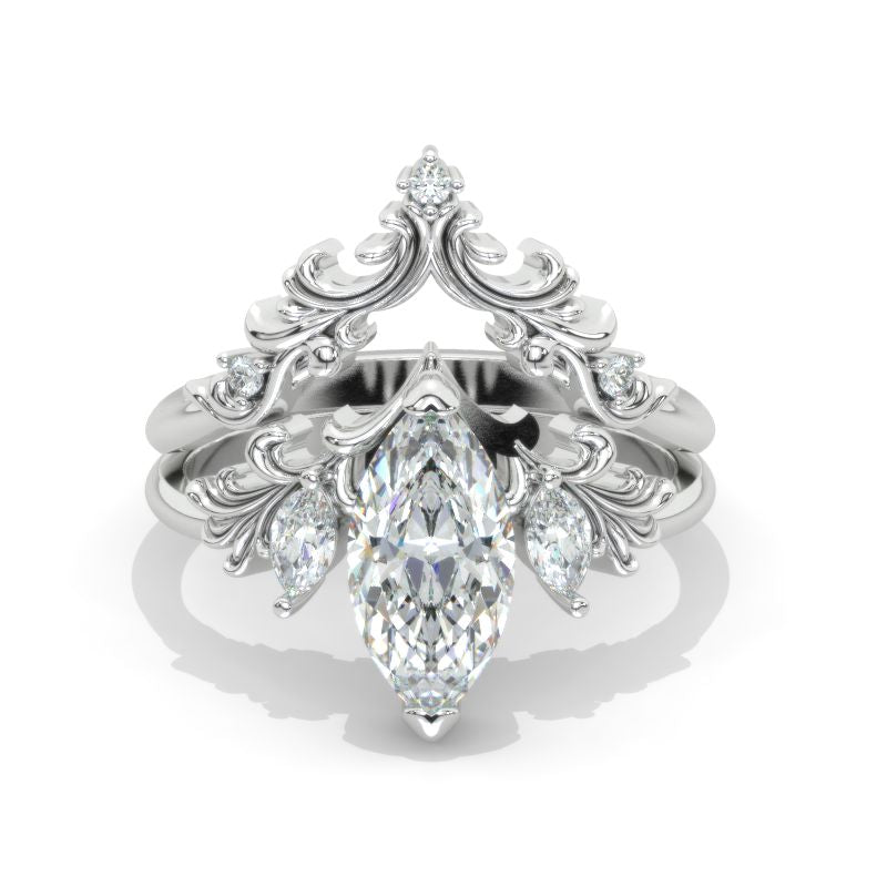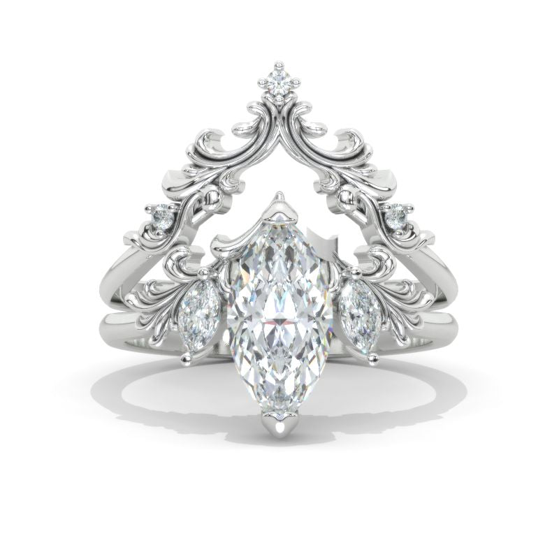 Engagement Ring: Min +1.5 Carat Lab-Grown Diamond Marquise Approximately 12x6mm D-Colorless VVS1-Clarity, VG-Cut, Ex-Polish, VG-Symmetry Center Stone set with Lab-Grown Diamond Accents in 14K White Gold Ring Set.