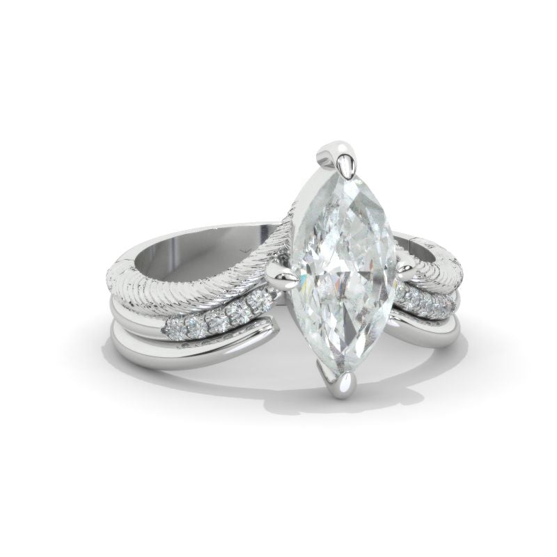 Engagement Ring: Approximately 1.5+ Carat LAB-Grown Diamond Marquise 12x6mm D-Colorless VVS1-Clarity, VG-Cut, Ex-Polish, VG-Symmetry Center Stone in 14K White Gold Ring.