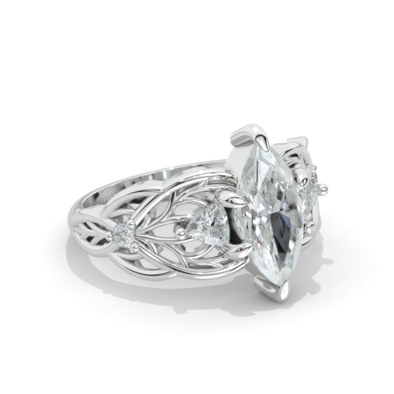 Engagement Ring: Approximately 1.5+ Carat LAB-Grown Diamond Marquise 12x6mm D-Colorless VVS1-Clarity, VG-Cut, Ex-Polish, VG-Symmetry Center Stone set with LAB-Grown Diamond Accents in 14K White Gold Ring.